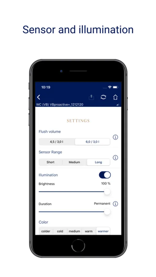 The new Villeroy & Boch Pro APP offers to create individual user profiles for the WC sensor operated flush plate ProActive+ and the urinal flushing sensor system ProDetect2.