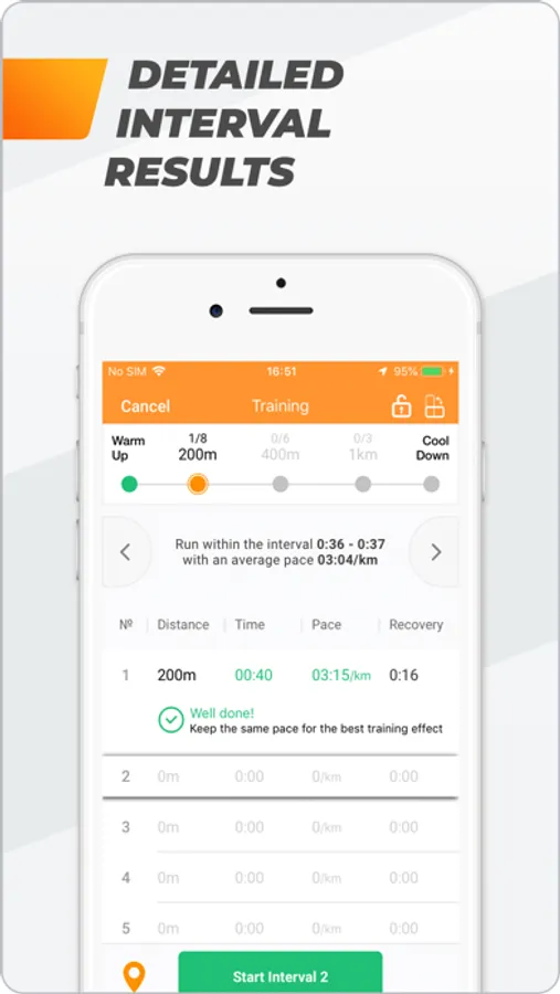 - Interval training with auto-stop functionality and detailed interval results.