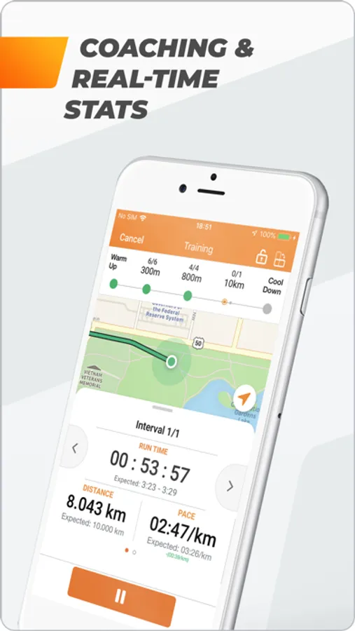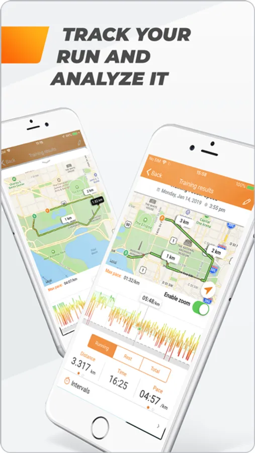 - Real-time GPS tracking of your running route on a map