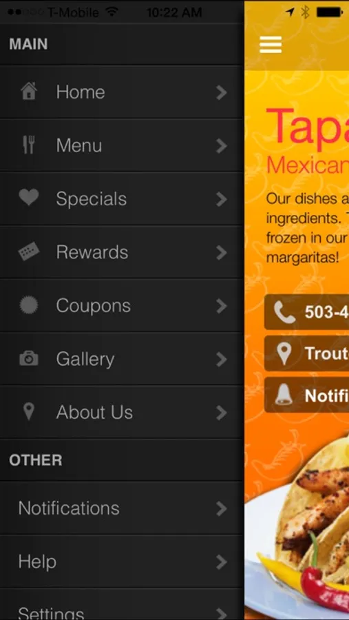 Download the App for Tapatio Mexican Restaurant and enjoy an exclusive download offer, a digital loyalty punch card and push notifications of surprise specials – all from the convenience of your smart phone. Quick, convenient and delicious for carry-out lunches or a more leisurely dine-in bar and restaurant, all made fresh daily – authentic Mexican cuisine never tasted so good! Scroll through and check out the menu that ranges from favorites like burritos and tacos to small and larger plate entrées that will satisfy any App-etite. Place your order for carry out, dine in and enjoy an icy margarita before dinner, try the Sunday buffet and more – all for you from Tapatio Mexican Restaurant.