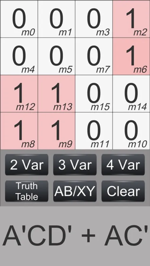 It is quick and simple to use with a nice interface. Could be improved by having an option to switch between minterms and maxterms, but still a great app.