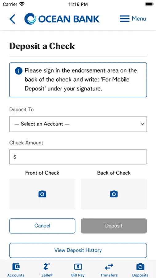 To use Ocean Bank Mobile, you must be an Ocean Bank customer and enrolled in our online banking service. To sign up, www.oceanbank.com.