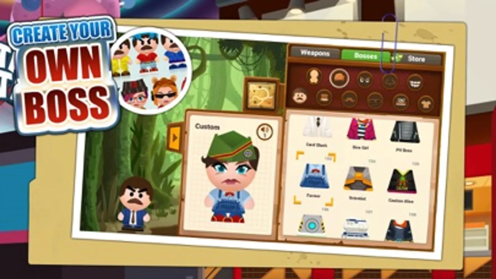 Crush enemies and your own personalized villains with custom crafted weapons. Release the mass havoc of monkeys, wield a samurai sword, or unleash the explosive power of a colossal diarrhea gun on your workplace foes!