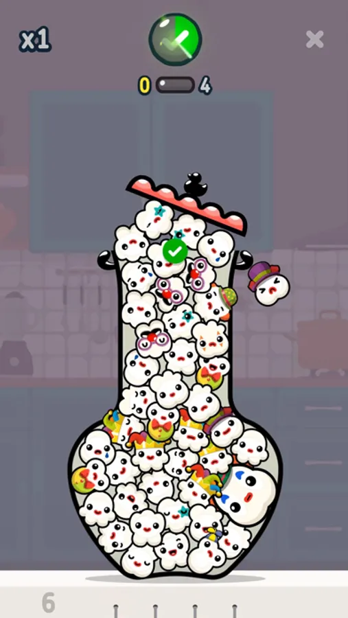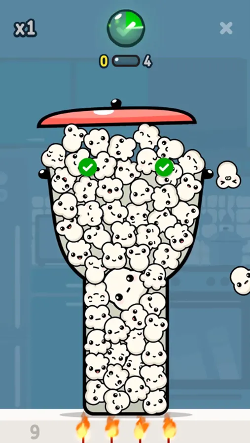 While the rules are simple and controls are easy, this offline arcade games has a physics system that can get tricky. The varying pot shapes and sizes affect the popping physics so each level will require your focus, good judgment of physics and perfect timing to predict the right amount of kawaii popcorn to drop into each pot.