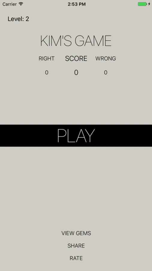 Kim's Game is a fun and addictive brain trainer. You are given a short time to memorize a set of shapes, and then enter what they were. Originally invented by Rudyard Kipling to be played with gems, it has since been used widely to teach memory and observation skills to everyone from pre-school children to the military.