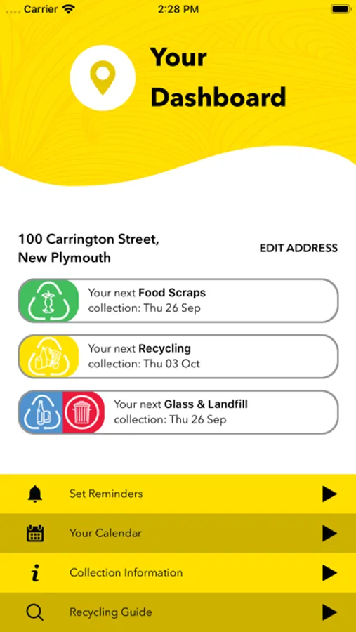 Find out everything you need to know about the New Plymouth District Council's rubbish and recycling collection service. Enter your address to find out what day your rubbish and recycling will be collected and set yourself a reminder. Use our recycling search to see what can and can't be recycled and look up general information about the collection service and how it works.