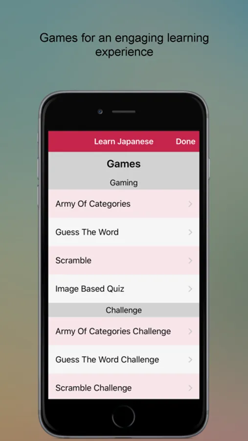 Speak Japanese app with more than 2000 words in 55 categories like Food, Clothes, Numbers, Travel, Emergency, Health etc. is here to support you in Japanese Language Learning. Our visual senses help us recall things easily, so this Learn Japanese app is full of word images and audios for SMART learning. To be more interactive, this Learn Japanese app contains different types of games.