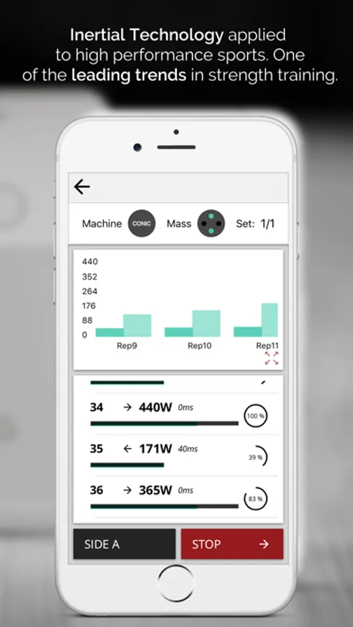 Users can save their workouts historical and consult at any time. The APP includes presets for each of the 3 machines including connecting hardware terminal.
