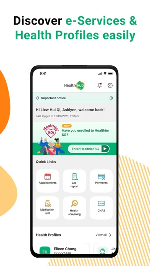 Conveniently access selected health records and e-Services using your mobile biometrics or 6-digit passcode.