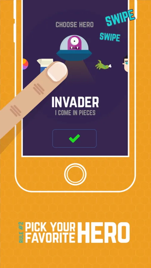 Finger Hero is a challenging single touch high score game. Choose your hero, tap and hold to play. Move swiftly and steer clear of the obstacles. Each time you bump into one of them - it’s a game over. Remember not to lift your finger!
