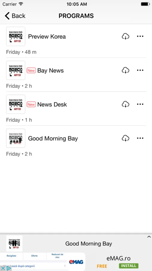 • Recorded shows (podcasts) – that you can either listen online or offline (after downloading them) without any data usage.