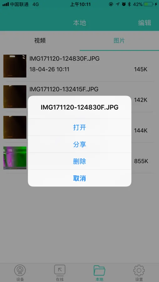 下载到本地的图片支持分享,本地的视频文件支持编辑和分享。