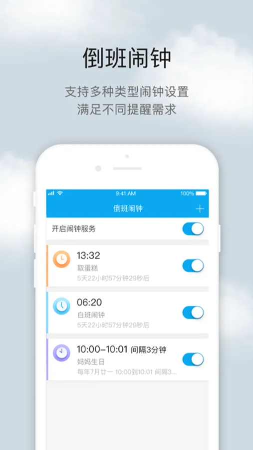 今天你上什么班?明天你上什么班?11月26日你上什么班?这是所有倒班人群都会遇到的问题,然而为了回答这些问题,倒班人群通常都会将自己的倒班情况记录在日历上。但是传统日历记录不但麻烦,而且不方便查阅与分享,无法与闹钟,代办事项等倒班人群同样关心并需要的功能结合。特定班次下特定条件的闹钟是几乎所有倒班人群的刚需,也是倒班助手APP软件的核心功能。