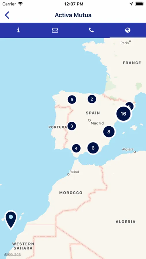 • Buscador de las oficinas de Activa Mutua a través de un sistema de geolocalización.