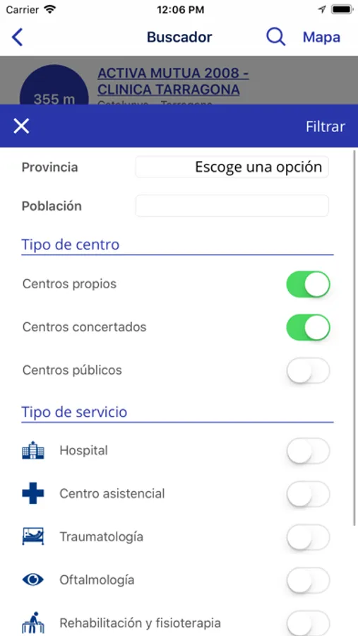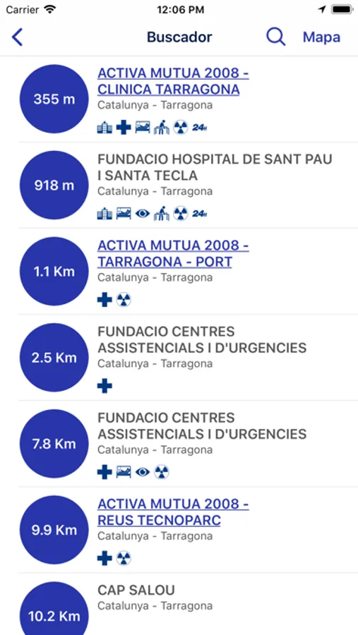 • Buscador de centros médicos a través de la ubicación del usuario .