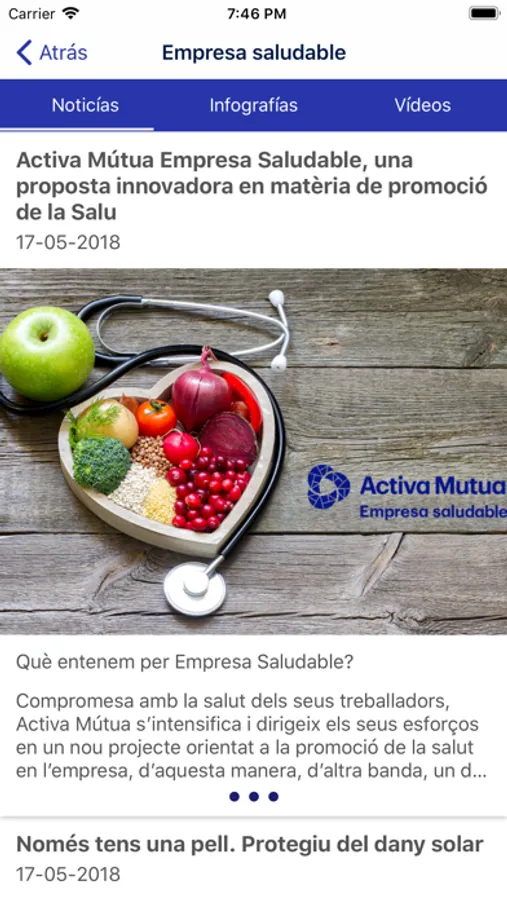 • Consulta de los servicios de la mutua tales como “Qué hacer en caso de: baja, enfermedad, accidentes” y prestaciones que ofrece.