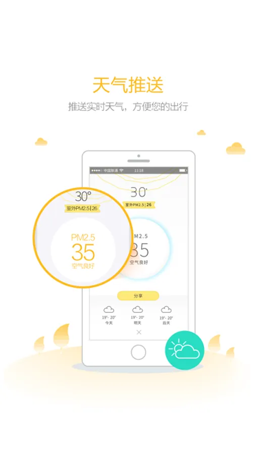 将实时空气质量指数显示在图标上,随时和周围小伙伴沟通天气情况;