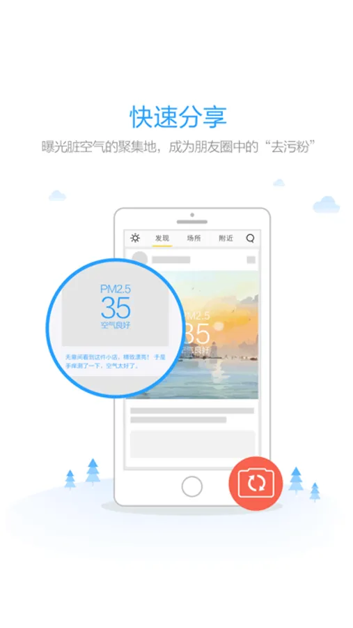 提供空气质量地图和社区功能,各景点、餐馆、商场空气质量状况随时分享、一键查询、