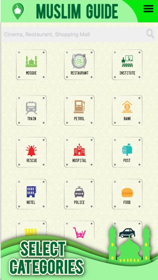 Muslim Masjid Guide is a handy mobile directory for all Muslim Travellers. It is a place finder for a list of essential locations like mosques, masjid, surau, halal restaurants, hotels and many places. Besides the preset places, this finder also has a build in search function for places not listed in the menu.