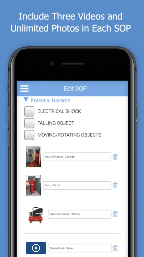 Our app allows you to quickly and easily create, share, and manage your organization’s SOP’s and lockout/tagout procedures. All from one place.