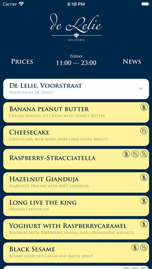 Using our Tastes App you are able to see our daily flavours of ice cream on your iPhone. In addition to a vast selection of 18 standard flavours we also offer a number of special flavours. These special flavours often change daily so if you see a flavour you like, drop by for a taste! Our news section will keep you informed about our promotions and discounts. Waiting in queue in front of the shop? Why not go through our Tastes App composing your ice cream beforehand.