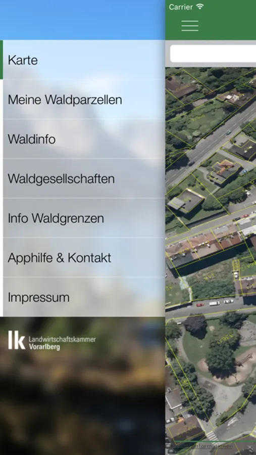 Die „Waldfinder-App“ bietet ein Hilfsmittel zum Auffinden von Waldparzellen in Vorarlberg an. (Hierbei bitte die Ungenauigkeiten von GPS und Kataster beachten).