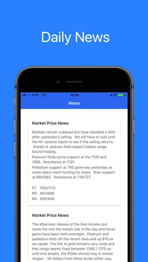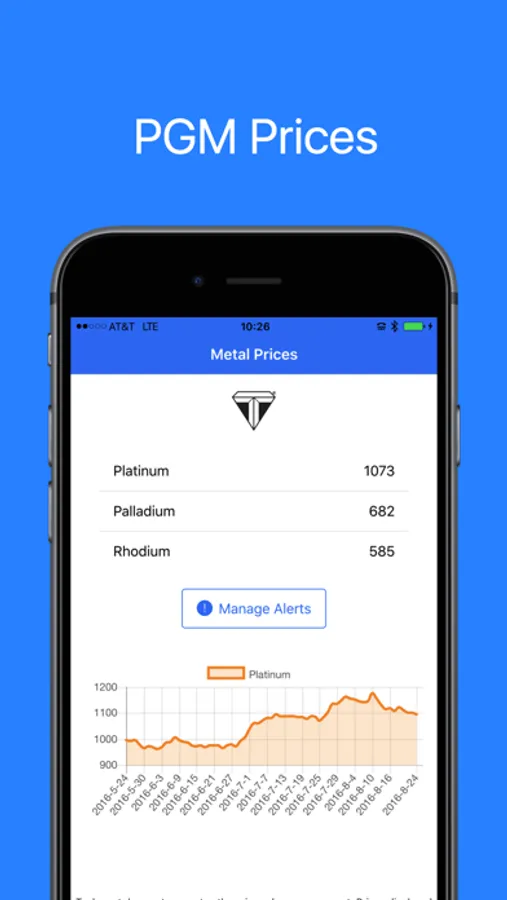 Our app shows the prices for Platinum, Palladium, Rhodium in real time for information purposes. You can also see historical prices for the past three months. We also know that you want to stay on top of the PGM prices so our app pushes alerts to you when the prices move.
