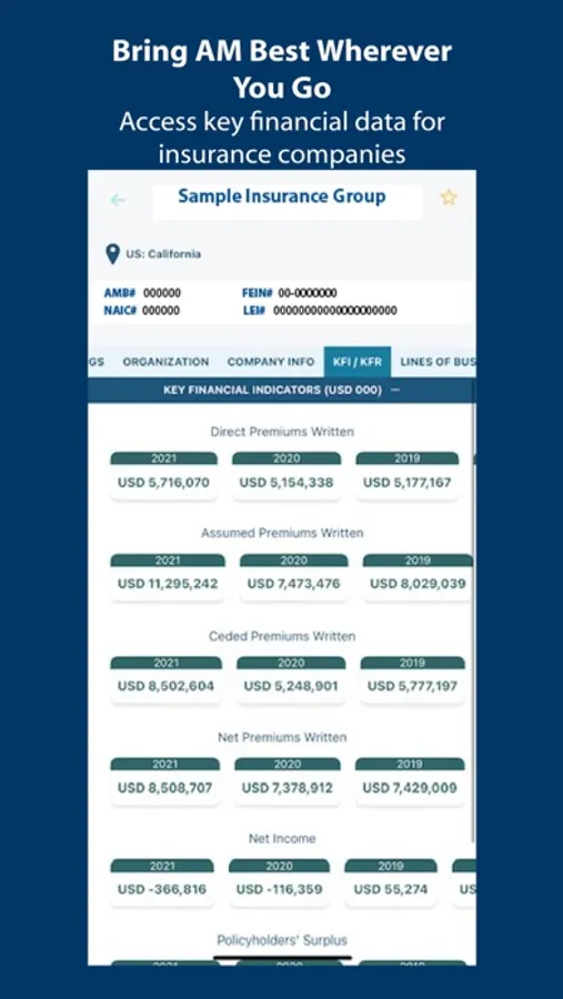 • Company Profiles: See all types of ratings and performance assessments published by AM Best. Select AM Best product subscribers have exclusive access to overviews of a company’s key financial indicators, market coverage, licensing status, and officers and directors.