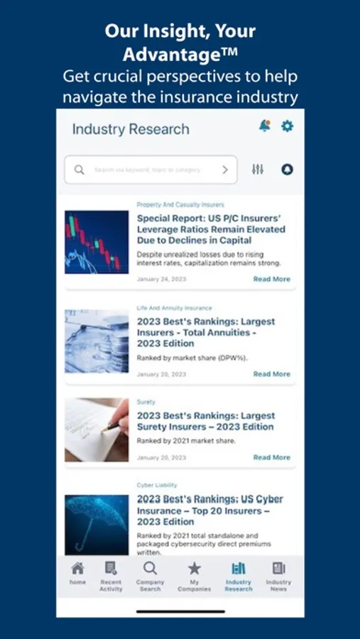 • Industry Research: Review headlines of exclusive research and analysis published by AM Best.