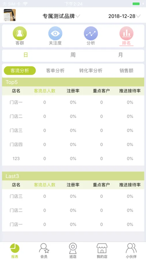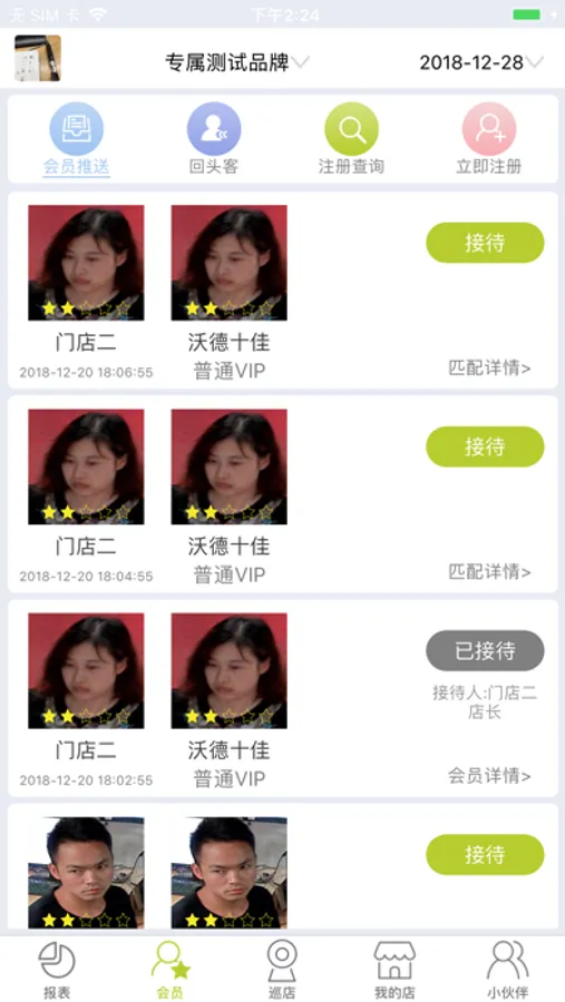 店计APP是与厦门瑞为信息技术有限公司的硬件产品店计搭配使用而开发的,其主要目的是方便用户管理自己的店铺,如果店铺中装有店计硬件产品,手机端可以查看店计的统计分析结果,进行店铺人员管理,店计统计的结果有人流量,男性客户数量,女性客户数量,并将客户按年龄分段统计;还可以将某些人注册为ViP客户,当店计硬件拍摄并识别到VIP客户时,会向用户推送消息。
