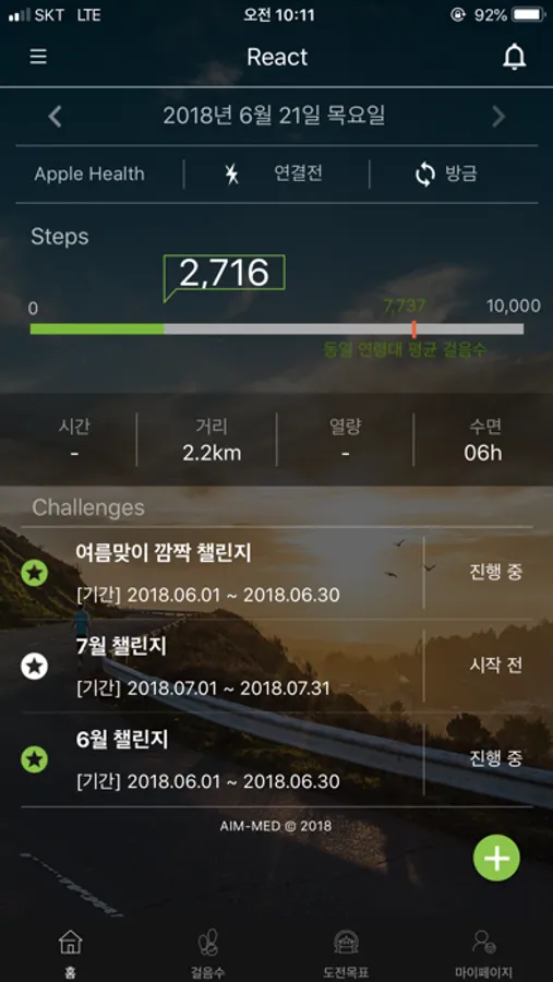 React는 건강 플랫폼과 걸음수·수면을 측정하는 기기인 React Band, HealthKit을 이용한 애플헬쓰와 연동됩니다.