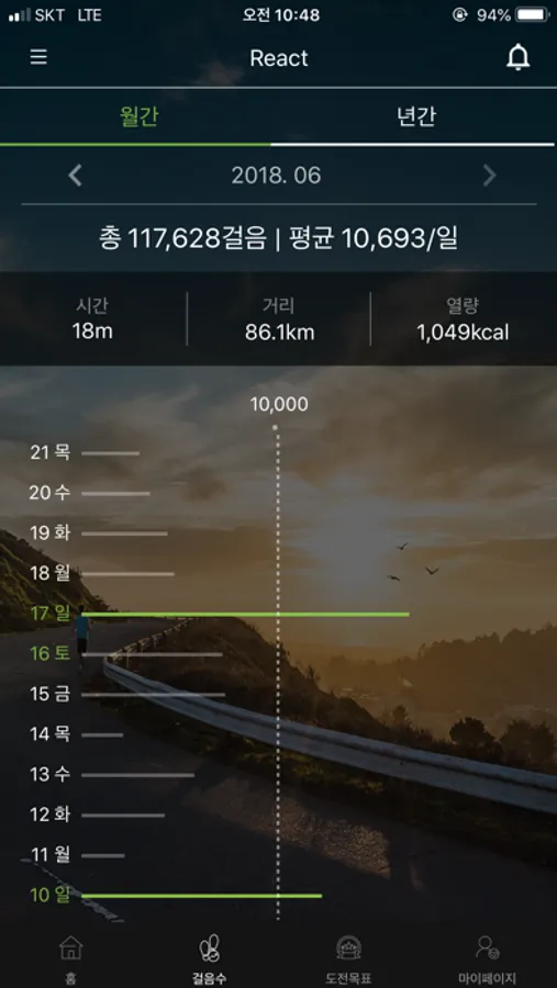 • 일, 월, 연 단위로 걷기 데이터 조회