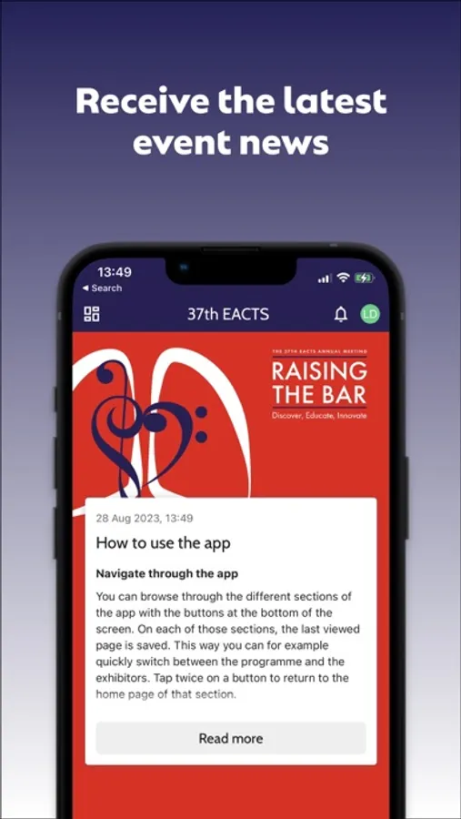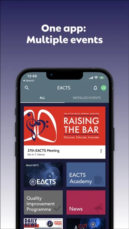The mobile app for the European Association for Cardio-Thoracic Surgery where you can access all news and events (Academy Courses & Annual Meetings) organised by EACTS