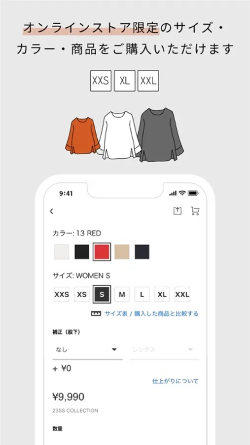 ※裾上げはボトムスの補正対象商品に限り、ご注文時に承っています。