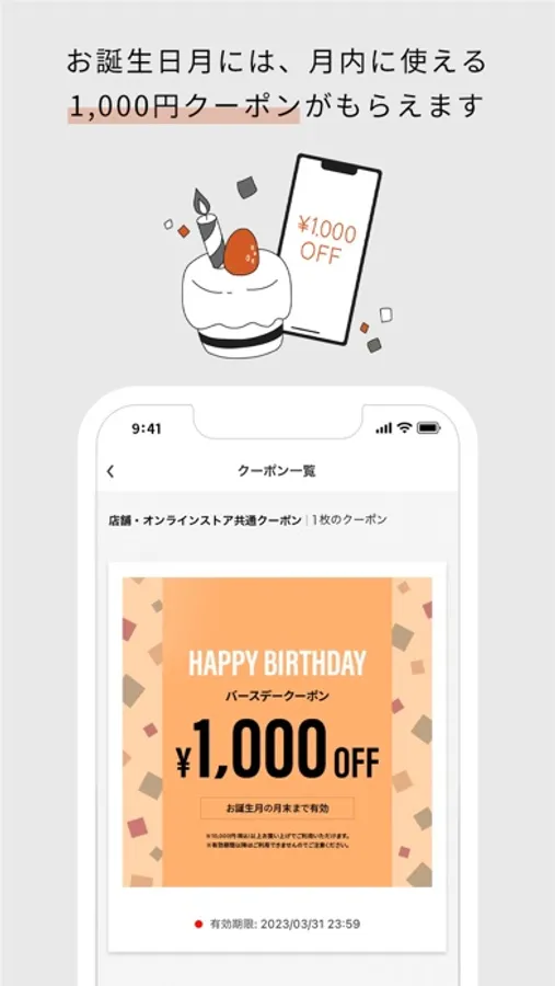 アプリ会員登録クーポン、バースデークーポンなど、アプリ限定のお得なクーポンをお届け。