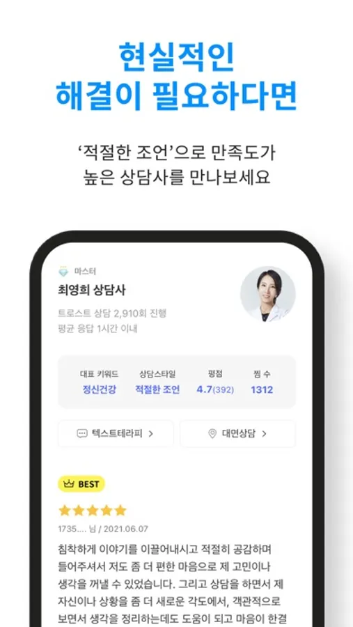 • 나의 상황, 감정에 따른 맞춤 추천 상담사님 중 한 분을 골라요.