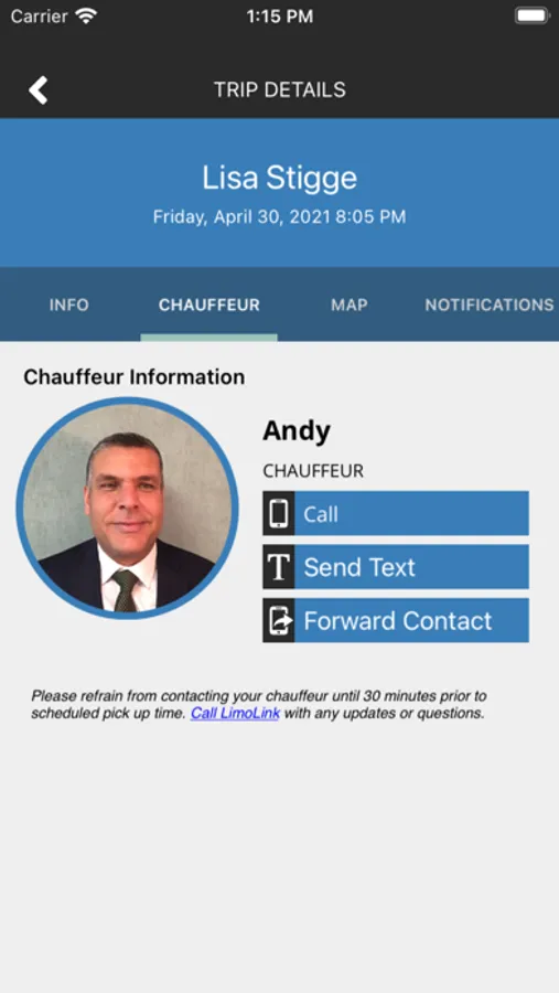 Access your reservation details virtually anywhere your day takes you with the LimoLink mobile app. Quickly view information about upcoming trips or past reservations. Driver contact information and on-site messages are only a tap away. The LimoLink Voyager app will give you the necessary tools to feel confident about your trips – download today for a peace of mind.