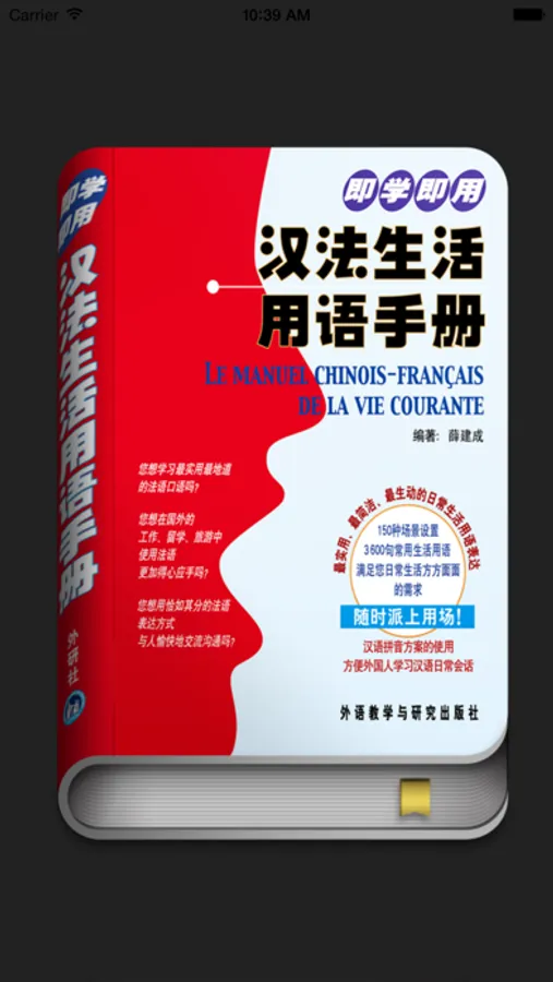 收录目前法语国家实用、简洁、生动的日常口语表达方式,包括天气、钟点、出门行车、购物、电话等,涉及人们日常生活的方方面面,在告诉使用者如何表达的同时渗透对法兰西文化点滴的介绍。