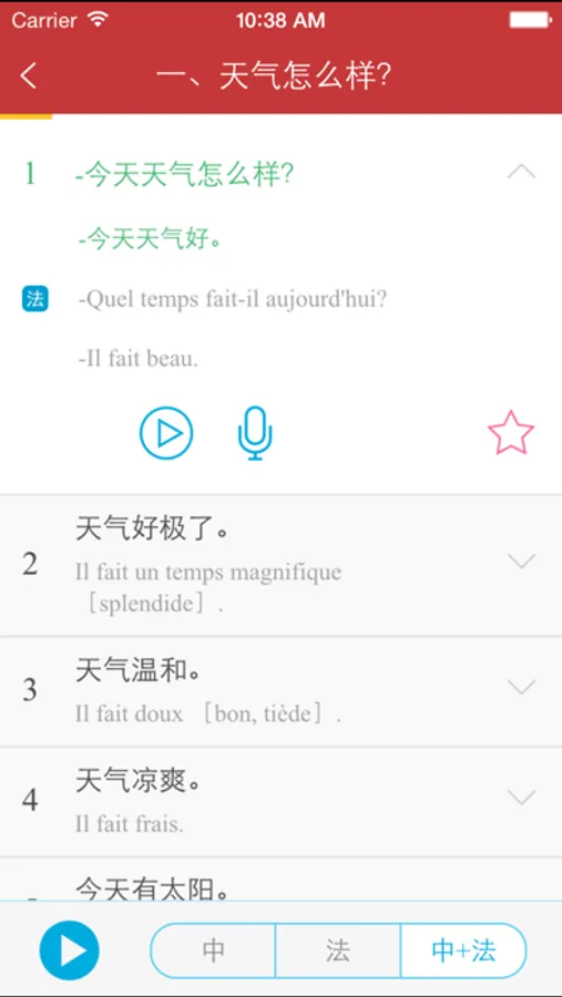 (3)真人例句发音:例句均配优质清晰发音,还提供录音功能,让你法语脱口而出。