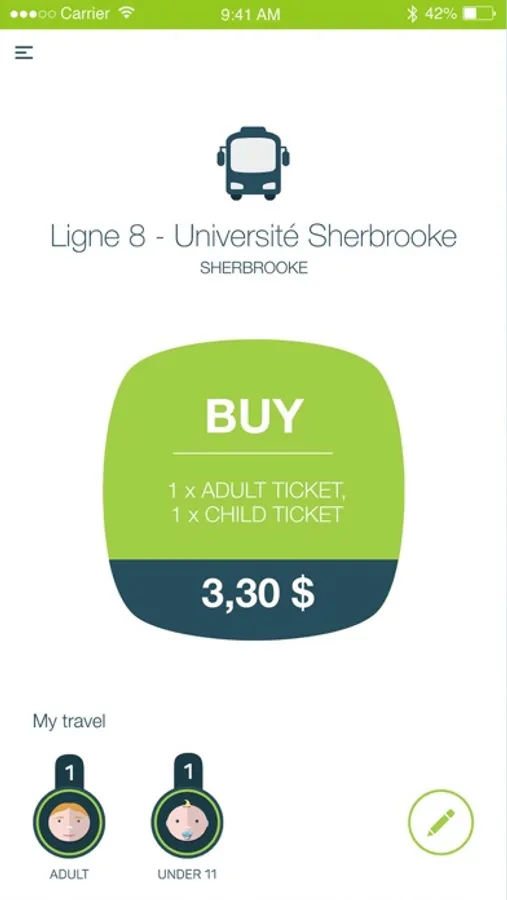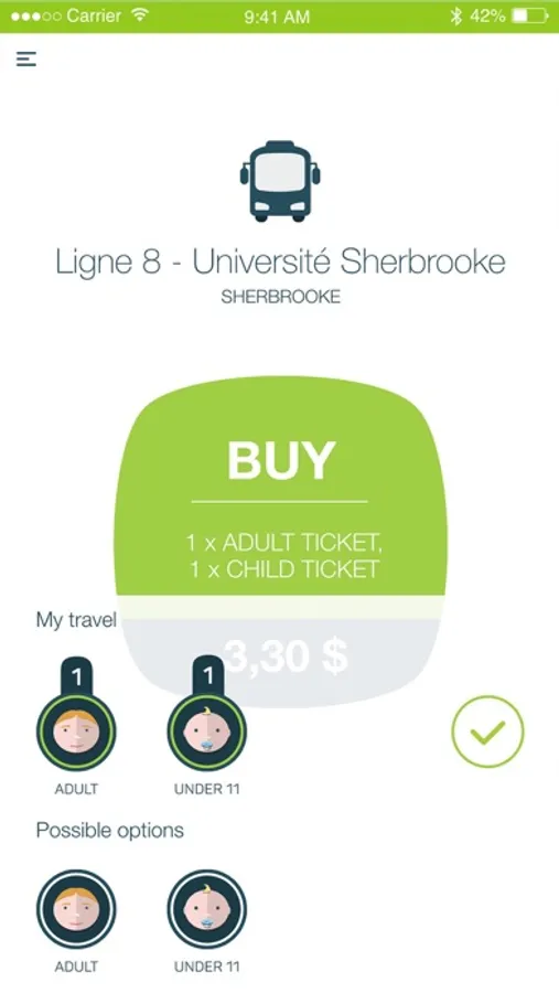 You can either change your travel profile and add new travelers and receive new proposal for tickets or you can confirm the purchase with just one tap on the big green button.