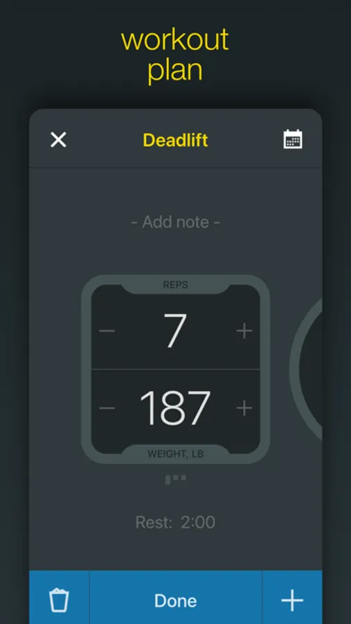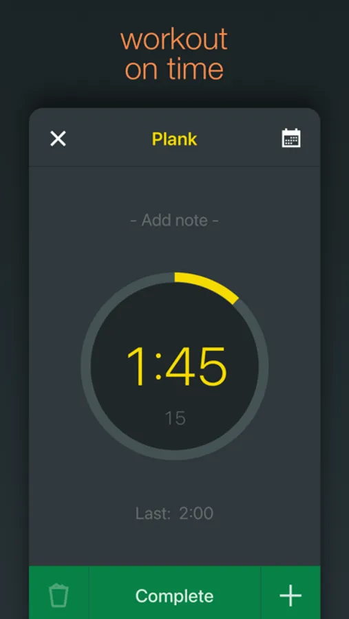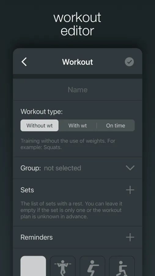 • Flexible reminder system will help set up regular workouts. You can specify not only specific dates or days of the week but also intervals. For example: "Every 3 days".