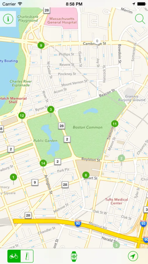 Don't worry, BikeHub's got your back. It's one thing, and one thing only: a map that lists every Hubway station. We include up-to-the-minute information about how many bikes and docks each station has right there on the map itself. We even have data that's fresher and more accurate than the official Hubway app. And of course everything's blazing fast and responsive, since ultimately we just want to get you out of our app and onto your bike as quickly as possible.