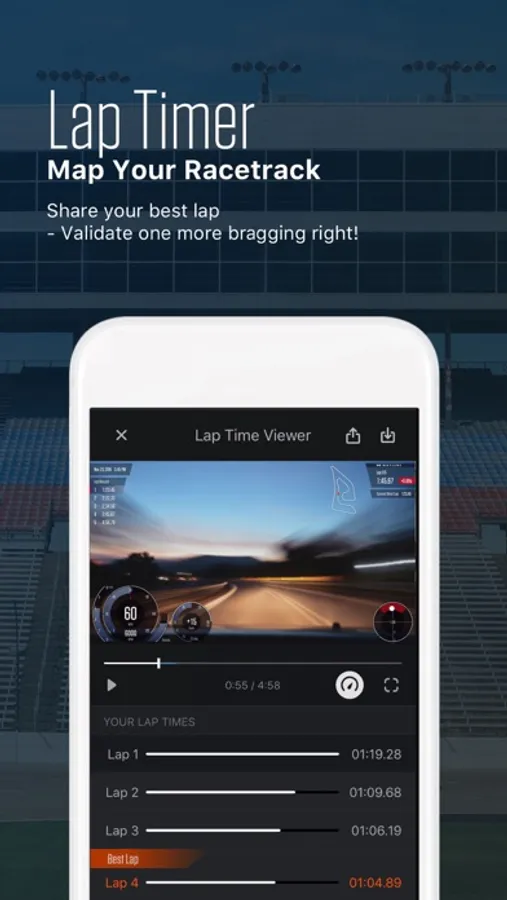 • edit a sharable video by selecting contents, graphical data overlays, and a musical soundtrack;