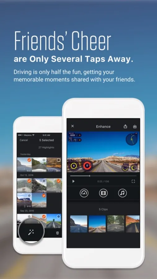 • share an edited video on the Waylens network or 3rd-party video hosting platforms.