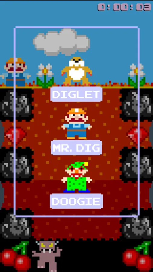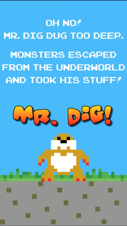 Mr. Dig loves collecting gems. One day he dug too deep. Monsters escaped from the underworld and stole his treasures and food! Help Mr. Dig and his friends battle his way through over 50 progressively tricky levels to get his stuff back.