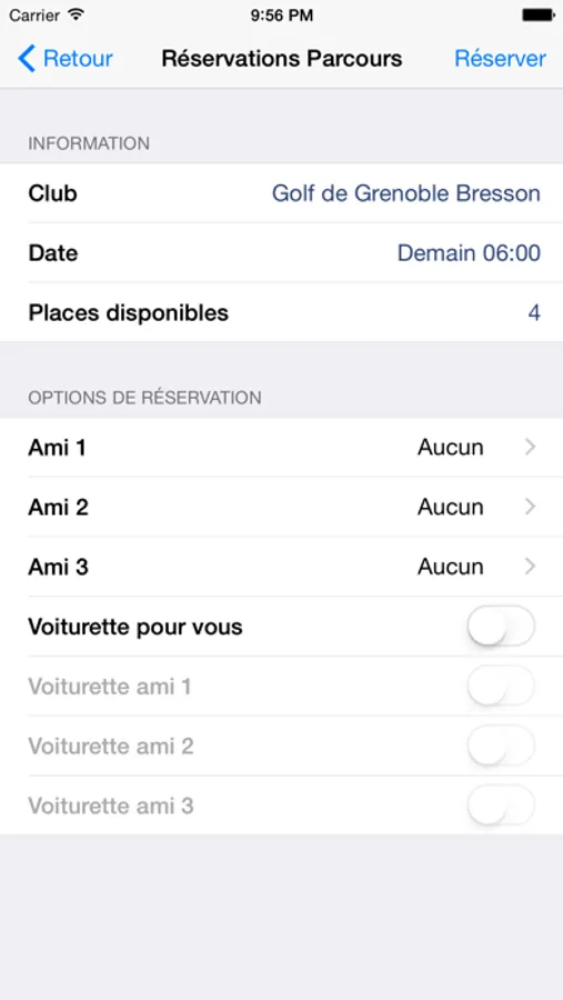 Application de réservation du Golf d'Orléans Limère