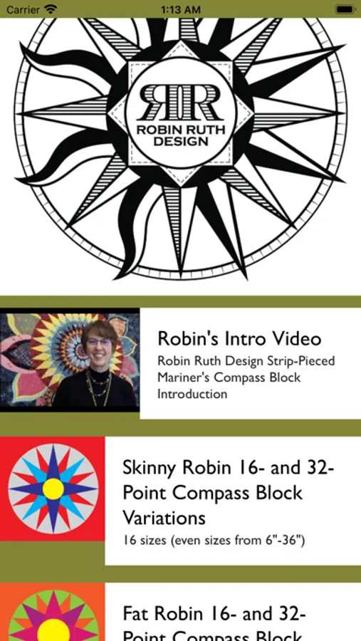 Videos and animations are available introducing you to Robin Ruth Design’s revolutionary new rulers, books, and method for making STRIP PIECED mariner’s compass quilt blocks.