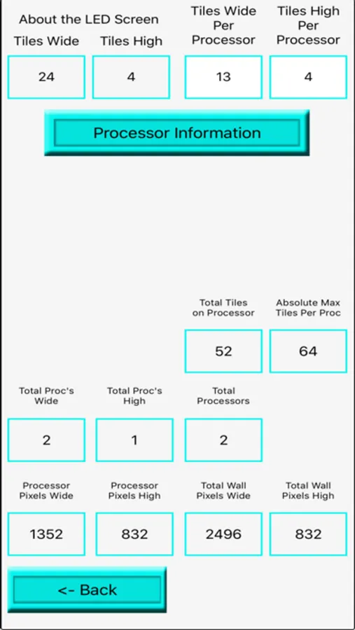 I wrote this application for the Techs and PM's I work with so that they can see for simple LED screens how many M2 Processors they need on the show for a given frame rate and colour depth.