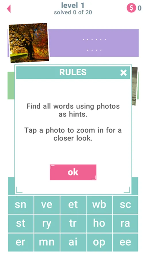 Each picture means something: an emotion, a verb, an adjective or a noun. It is up to you to find the answer! Tap on the picture to zoom in and try to find the answer! Some clues are simple and some are more difficult. If you like word games or puzzle game, this word game is for you!