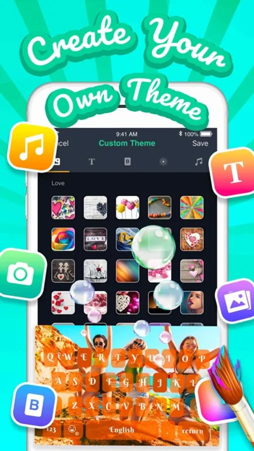 * Make your own stylish keyboard wallpaper with your photos as the background.